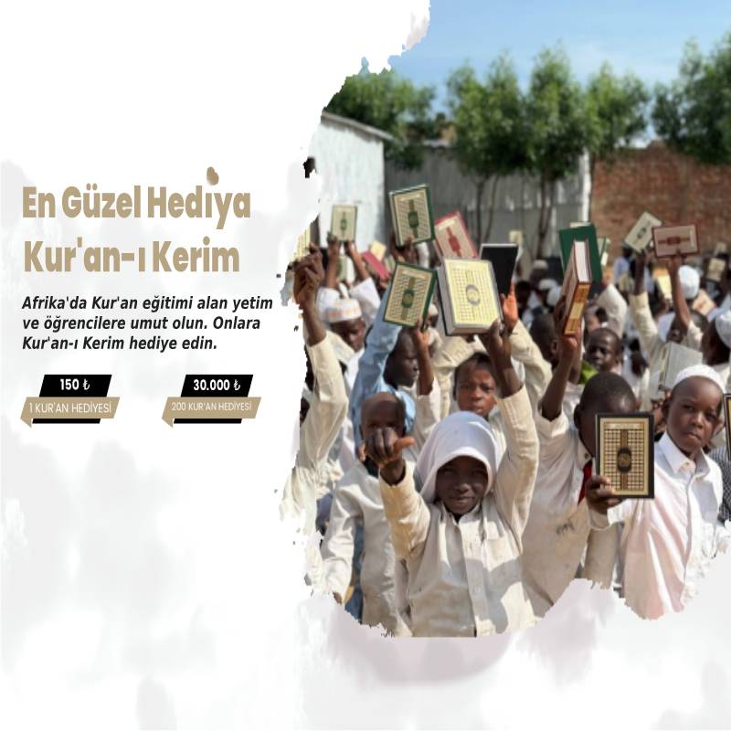 Sizlerin destekleriyle talebelere binlerce Kur’an-ı Kerim hediyesi dağıtmayı ve Kur’an-ı Kerim kitabı olmayan talebe bırakmamayı amaçlıyoruz. Bu hediye, sadece bir kitap değil, aynı zamanda İslam yolunda hafızlık yolunda eğitime destektir. Biz, her Kur’an-ı Kerim hediyesinin, bir kalbin ışığını yeniden canlandırdığına inanıyoruz. Bu nedenle, sizlerin katkılarıyla daha fazla talebeye ulaşmayı, hafız sayısını arttırmayı ve İslamın neferlerinin sayısını çoğaltmayı hedefliyoruz.